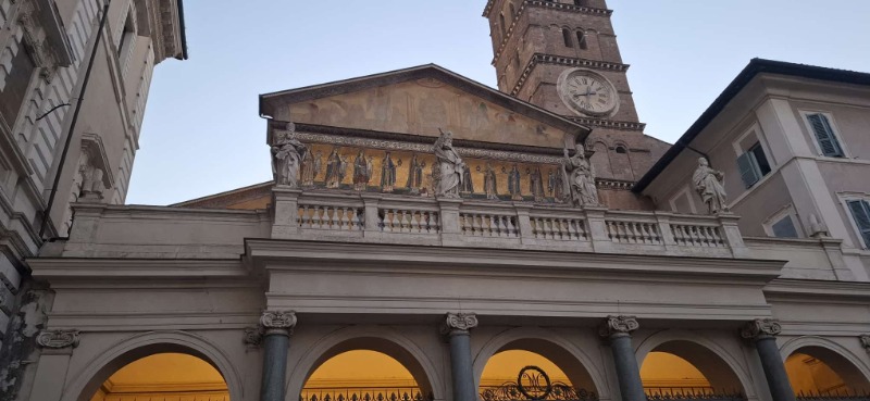 Unsere Reservierung in einer Pizzeria mit Klimaanlage rettete uns aus der Hitze. Nach unserer ersten italienischen Pizza nahmen wir noch am Abendgebet in Santa Maria in Trastevere teil.