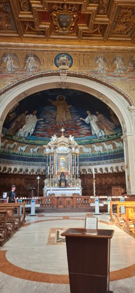 Wir haben uns die Kirchen Santa Sabina und Santi Cosma e Damiano angeschaut, den Aventin, einer der 7 Hügel Roms, bestiegen und das Kolosseum umrundet. Besonders schön war der Blick durch das Schlüsselloch auf den Petersdom.