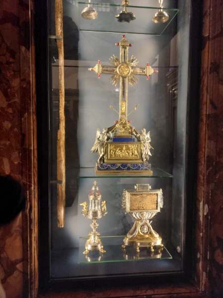 Ein paar 100m entfernt steht eine kleine, aber einer der reichsten Kirchen Roms: Basilika di Santa Croce in Gerusalemme hat den Namen erhalten, da Sie wahrscheinlich die bedeutendsten Reliquien enthält. Wir sahen Holzsplitter des Kreuzes, an dem Jesus gekreuzigt wurde, Dornen von der Dornenkrone und ein Nagel mit dem er ans Kreuz geschlagen wurde.