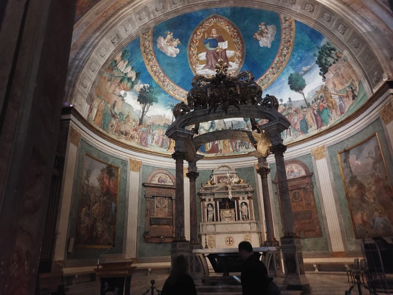 Nach der Besichtigung des Petersdom hat sich eine Neigungsgruppe entschieden eine Kirchentour zu machen und dabei vier sehenswerte Kirchen in Rom anzuschauen. Als erstes haben wir Santa Maria Maggiore, die älteste Marienkirche Roms besichtigt. Ihre Entstehungslegende und ihr kunstvoller Aufbau haben uns beeindruckt. Und Pfarrer Ret hat uns alles erzählt was wir über die Kirche wissen sollen.