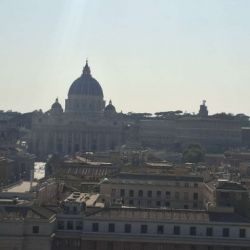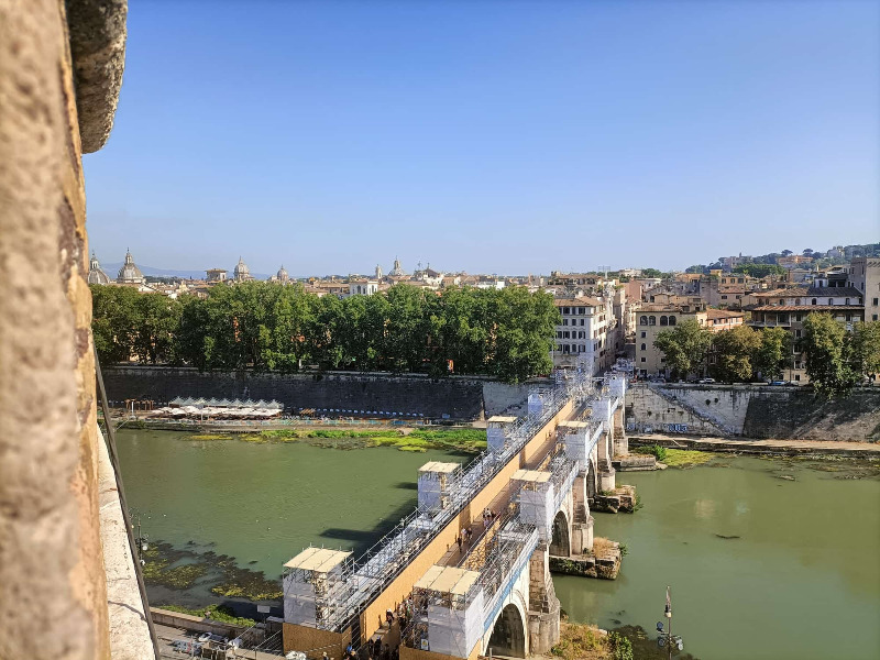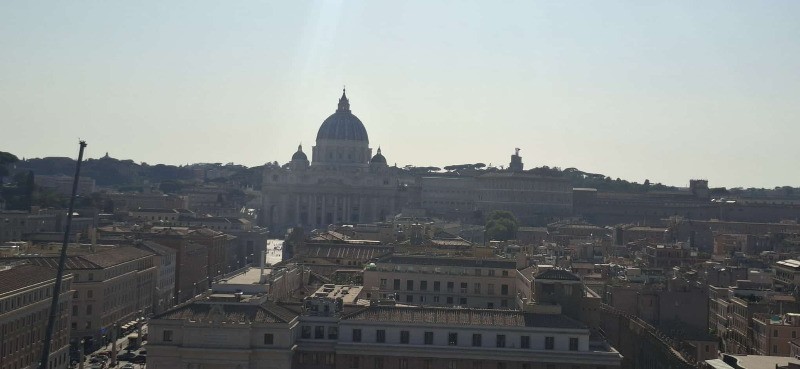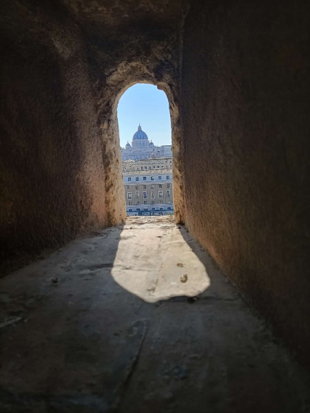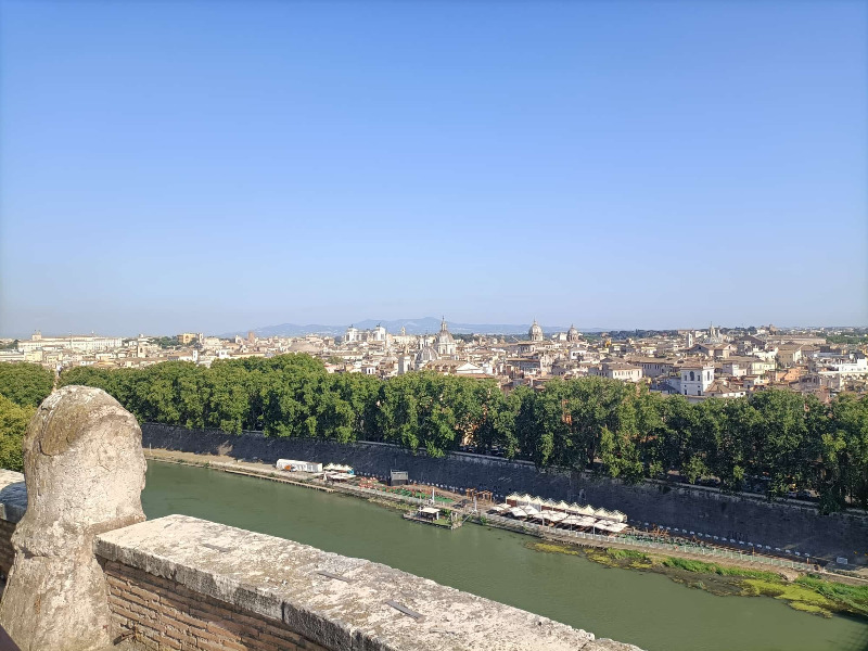 Gegen Nachmittag am Mittwoch entschlossen wir, ein Teil der Wallfahrtsgemeinschaft, uns - als Kleingruppe - die Engelsburg zu erkunden. Davor musste aber unser große Hunger nach der langen Anstehzeit am Petersdom gestillt werden. Dafür haben wir ein Laden für Pizza auf die Hand auserkoren, bei welchem sich der Verkäufer als äußerst freundlich herausstellte und alle kurzerhand zu seinen besten Freunden ernannte. Die Pizza war zu unserem Glück auch wirklich gut. Direkt im Anschluss bewegten wir uns im Laufschritt Richtung Engelsburg. Dort angekommen besichtigten wir die Burg. Die Aussicht von ganz oben war atemberaubend schön. Wir bewunderten gemeinsam Rom von oben und schossen natürlich fleißig Fotos. Nachdem alle den Ausblick genossen und ausreichend Sonne getankt hatten machten wir uns auf um für das gemeinsame Abendessen einzukaufen. Vor der Engelsburg trafen wir auf „Die mit dem Pömpel“. Das waren ein paar Ministranten, ebenfalls auf Wallfahrt, die uns um ein Bild mit ihnen und einem Pömpel für ihren Instagram baten. Da wir natürlich für jeden Spaß zu haben waren, willigten wir ein und hatten dann ein Bild mit einem Pömpel. Im Anschluss an diese interessante Begegnung verzehrte unsere Kleingruppe ihr Abendessen auf dem Gianicolo, einem der sieben Hügel Roms, mit einem erneut schönen Ausblick. Ziemlich müde begaben wir uns zum Teil zu Fuß und zum Teil mit dem Bus zum Hotel zurück. Dort trafen wir die andere Neigungsgruppe wieder und schlossen den Tag mit einem Abendimpuls ab.