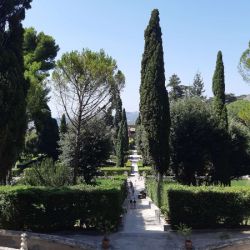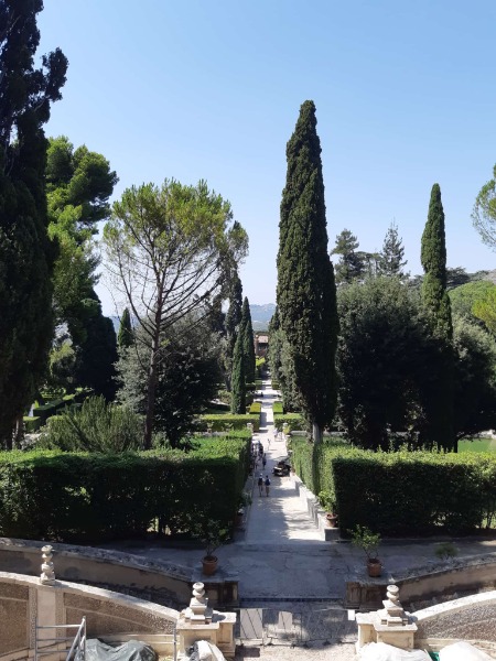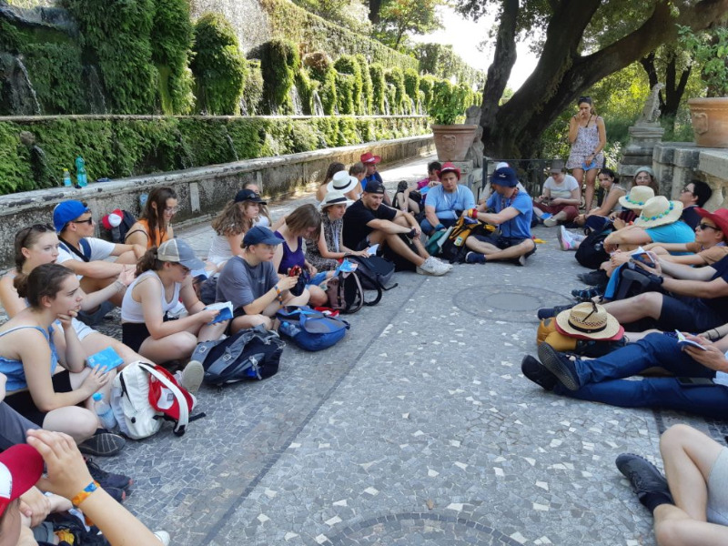Am Donnerstag stand ein entspannter Ausflug nach Tivoli (Attentione: NICHT die Karlsruher Haltestelle) in den Albaner Bergen auf dem Tagesprogramm. Nach einer kurzweiligen Busfahrt, die durch Musik untermalt wurde, plünderten wir den dortigen Supermarkt. Die Villa Adriana - staubtrockene Sandsteinruinen umsäumt von einer Vielzahl an Olivenbäumen - diente als Picknickort. Anschließend fuhr uns der werte Herr Rolf (unser Busfahrer) zur nächsten Location: Villa d'Este. Dies ist eine altehrwürdige Wohlfühloase, welche mit ihren mehr als 100 Fontänen uns erfrischte und die knapp 40°C erträglicher machten. Der Nachmittagsimpuls - der übertönt wurde von lautem Vogelgekreische in den umliegenden Bäumen - war für uns sehr reflektierend. Der Tag endete mit einem Restaurantbesuch, bei dem wir den Tag entspannt ausklingen ließen, hierbei begleitete uns traditionell italienische Live-Musik.