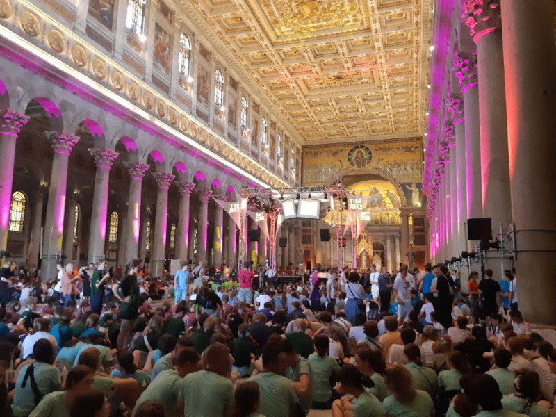 Unser letzter Tag in Rom begann mit dem Abschlussgottesdienst der Erzdiözese Freiburg. Wir gehörten dabei zur ersten Gruppe und waren gemeinsam mit 3000 anderen Ministranten in der Kirche Sankt Paul vor den Mauern, um mit unserem Erzbischof den Abschluss der Wallfahrt zu feiern. Nach dem Gottesdienst haben wir dann noch einen alten Bekannten wieder getroffen, Jörg Künning - mit seiner Gruppe aus Messkirch. Nach einer kleinen Laolawelle und einem Bild, konnten wir dann auch den Erzbischof treffen und sogar mit ihm ein Foto machen. Dann haben wir uns auf den Weg gemacht. Das erste Stück noch als große Gruppe, wobei es beinahe zu einem Unfall kam, als Pfarrer Ret sich unter eine schließende Schranke stellte, nur ein Warnruf konnte uns vor einem "Heiligen Torsten, Schutzpatron der Beschränkten" bewahren. Im Folgenden, haben wir uns dann in zwei Kleingruppen aufgeteilt, diejenigen, die nochmal in Richtung Pantheon wollten, um dort zum Trevibrunnen und zur Spanischen Treppe zu gehen und etwas zu Shoppen, und diejenigen, die mit Pfarrer Ret aufgebrochen sind, um noch ein paar Kirchen anzuschauen. Unser Rundgang began mit einer Runde Eis. Nach dieser Stärkung, sind wir zum Trevibrunnen aufgebrochen. Nach einigen Minuten Gedränge durch enge Gassen mit vielen Anderen, standen wir recht überrascht vor dem Brunnen. Er ist Teil eines Gebäudes, groß und beeindruckend, doch von Weitem hat man ihn nicht bemerkt. Er lag fast schon verborgen zwischen den Häusern. Ihn vollständig zu sehen war jedoch schwierig, da viele Menschen auf dem Platz waren und sich um den Brunnen gedrängt haben. Nachdem ein Teil unserer Gruppe Münzen für Glück in den Brunnen geworfen hatte, sind wir weiter zur Spanischen Treppe, auch hier war es voll, doch der Zugang war leichter. Wir sind die freien Treppen hinauf und haben die Aussicht genossen, da es verboten ist dort zu sitzen, konnte man tatsächlich die Treppe selbst sehen, da Viele nur unten standen und nicht hoch gelaufen sind. Nach etwas Zeit um die Eindrücke zu verarbeiten, haben wir uns dann auf den Rückweg zur großen Gruppe gemacht. Auf dem Weg, haben wir noch ein paar Souvenirs eingekauft, um dann überpünktlich anzukommen. Um 18 Uhr ging es dann zurück, um sich mit der Kirchengruppe wieder zu treffen. Nach einer recht langen und anstrengenden Busfahrt, mussten wir dann feststellen, dass wir doch nicht ganz von Dieben verschont wurden. Ein ärgerlicher Zwischenfall auf der letzten Busfahrt vor der Abreise, aber wir können dankbar sein, dass wir so glimpflich davon gekommen sind. Nach einer kurzen Einkaufs- und Toilettenpause sind wir dann mit dem Bus losgefahren. Auf in die Nacht und zurück in Richtung Deutschland.