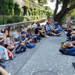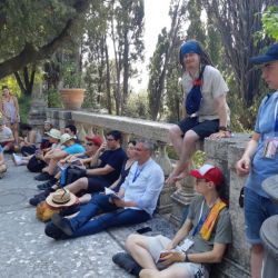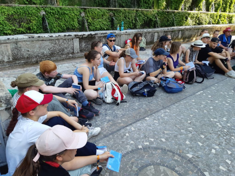 Am Donnerstag stand ein entspannter Ausflug nach Tivoli (Attentione: NICHT die Karlsruher Haltestelle) in den Albaner Bergen auf dem Tagesprogramm. Nach einer kurzweiligen Busfahrt, die durch Musik untermalt wurde, plünderten wir den dortigen Supermarkt. Die Villa Adriana - staubtrockene Sandsteinruinen umsäumt von einer Vielzahl an Olivenbäumen - diente als Picknickort. Anschließend fuhr uns der werte Herr Rolf (unser Busfahrer) zur nächsten Location: Villa d'Este. Dies ist eine altehrwürdige Wohlfühloase, welche mit ihren mehr als 100 Fontänen uns erfrischte und die knapp 40°C erträglicher machten. Der Nachmittagsimpuls - der übertönt wurde von lautem Vogelgekreische in den umliegenden Bäumen - war für uns sehr reflektierend. Der Tag endete mit einem Restaurantbesuch, bei dem wir den Tag entspannt ausklingen ließen, hierbei begleitete uns traditionell italienische Live-Musik.